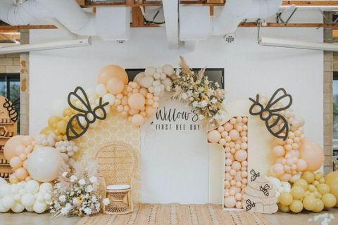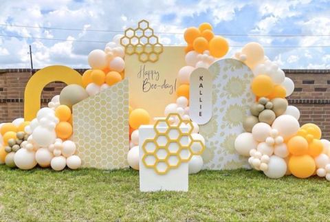 Celebrate your Mama to Bee or One Little Honey Bee Birthday Party with this stunning double-stuffed balloon garland kit!