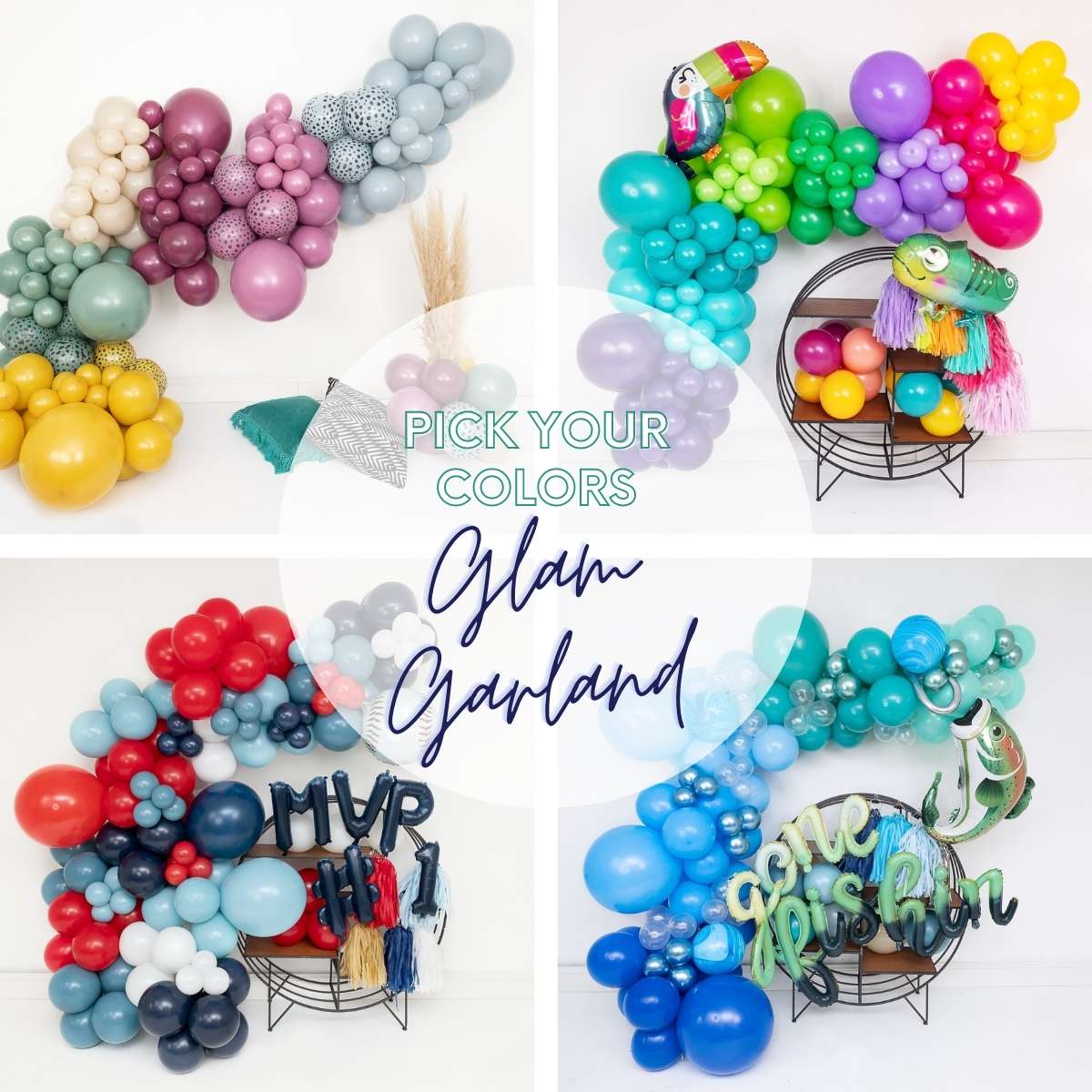 Standard Glam Garlands are a great addition to your next party and will be the talk of the party! Choose from our standard color collection and talk to us about specialty balloon add-ons!